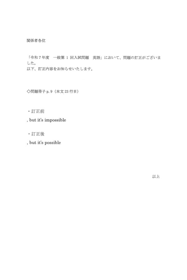 2025年度入試過去問題 第1回(英語 問題)(1ページ目)|国学院高等学校の入試過去問