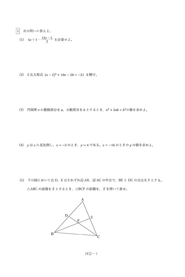 2025年度入試過去問題 一般(数学 問題)(1ページ目)|郁文館高等学校の入試過去問