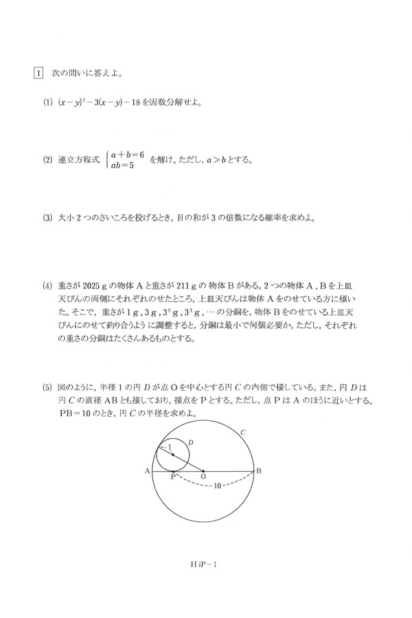 2025年度入試過去問題 東大・国立選抜クラス(数学 問題)(1ページ目)|郁文館高等学校の入試過去問