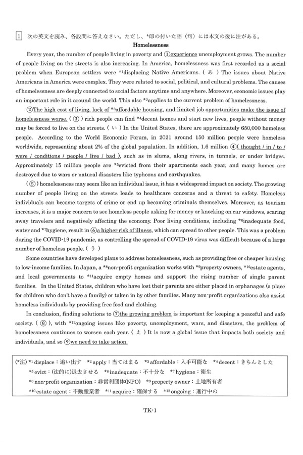 2025年度入試過去問題 東大・国立選抜クラス(英語 問題)(1ページ目)|郁文館高等学校の入試過去問