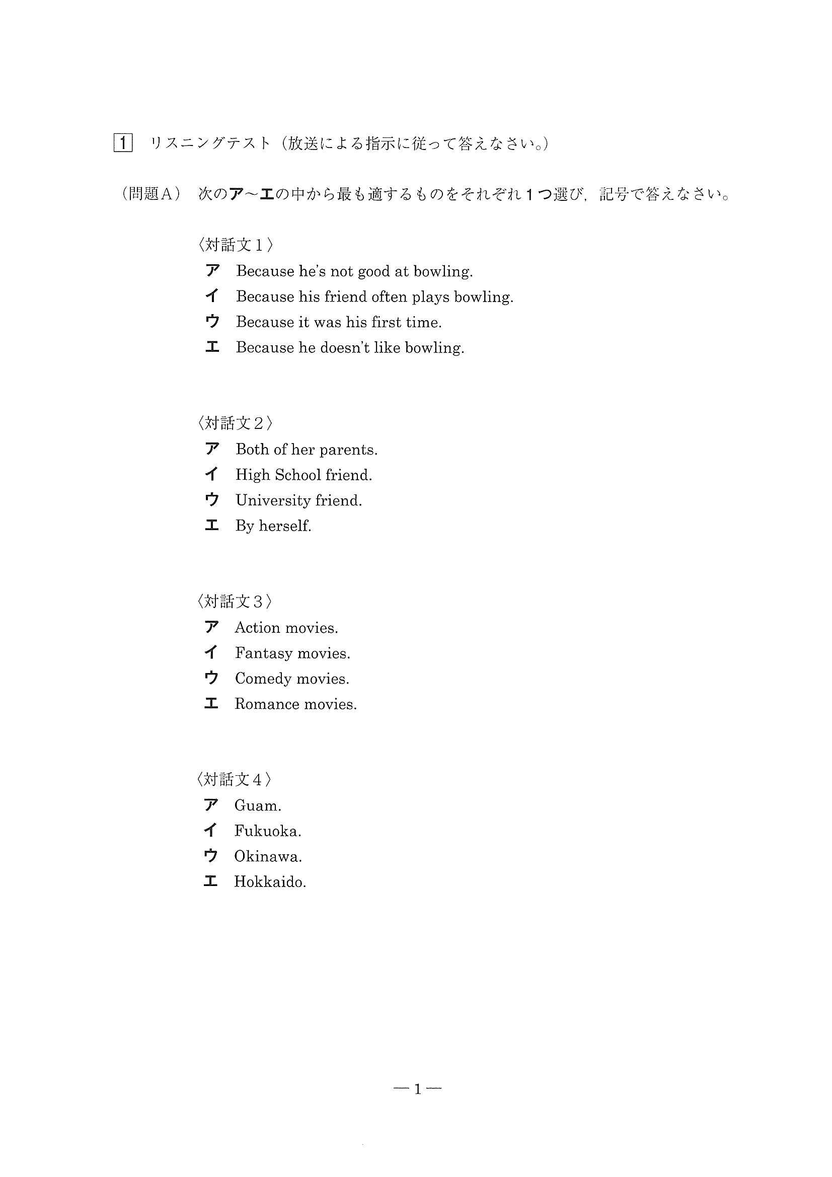 入試過去問(問題)(1ページ目)|岩倉高等学校の入試過去問