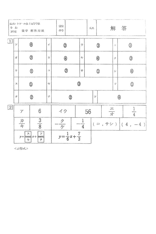 2021年度入試過去問題 第2回(数学 解答)(1ページ目)|品川エトワール女子高等学校の入試過去問