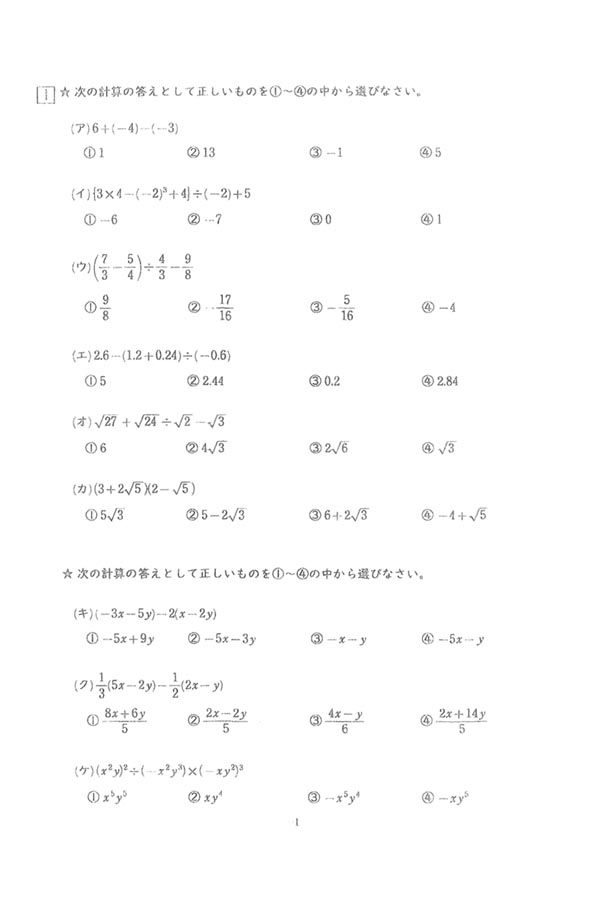 2021年度入試過去問題 第2回(数学 問題)(1ページ目)|品川エトワール女子高等学校の入試過去問