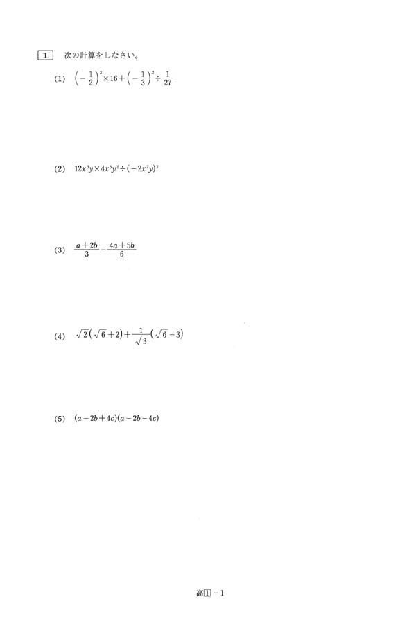 令和6年度入試過去問題(数学 問題)(1ページ目)|文教大学付属高等学校の入試過去問