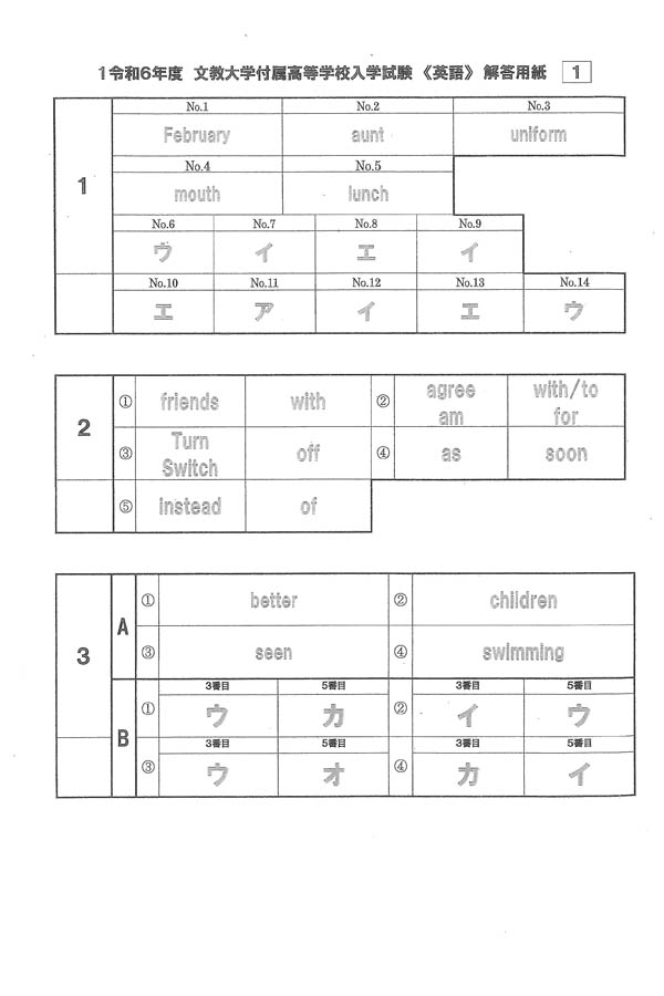 令和6年度入試過去問題(英語 解答)(1ページ目)|文教大学付属高等学校の入試過去問