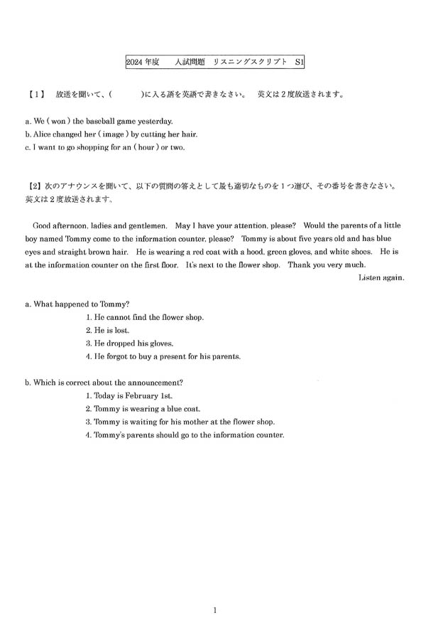 2024年度入試過去問題(英語 問題)(1ページ目)|多摩大学目黒高等学校の入試過去問