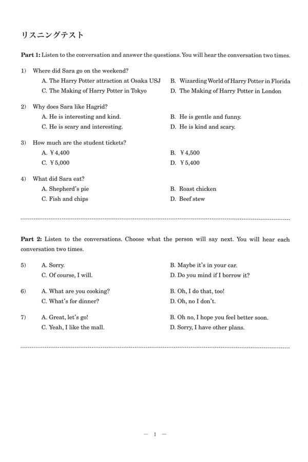 2025年度入試過去問題 (英語 問題)(1ページ目)|玉川聖学院高等部の入試過去問