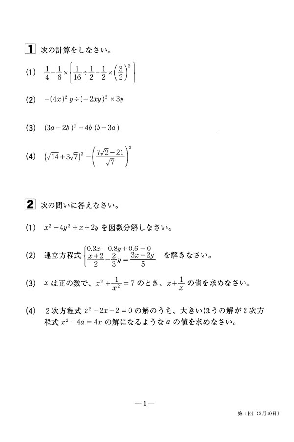 入試過去問(問題)(1ページ目)|実践学園高等学校の入試過去問