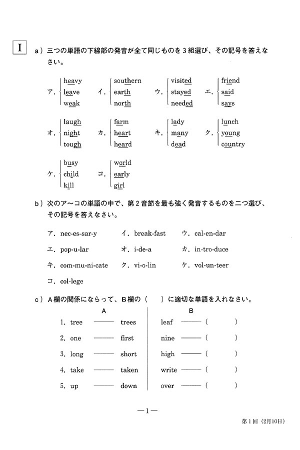 入試過去問(問題)(1ページ目)|実践学園高等学校の入試過去問