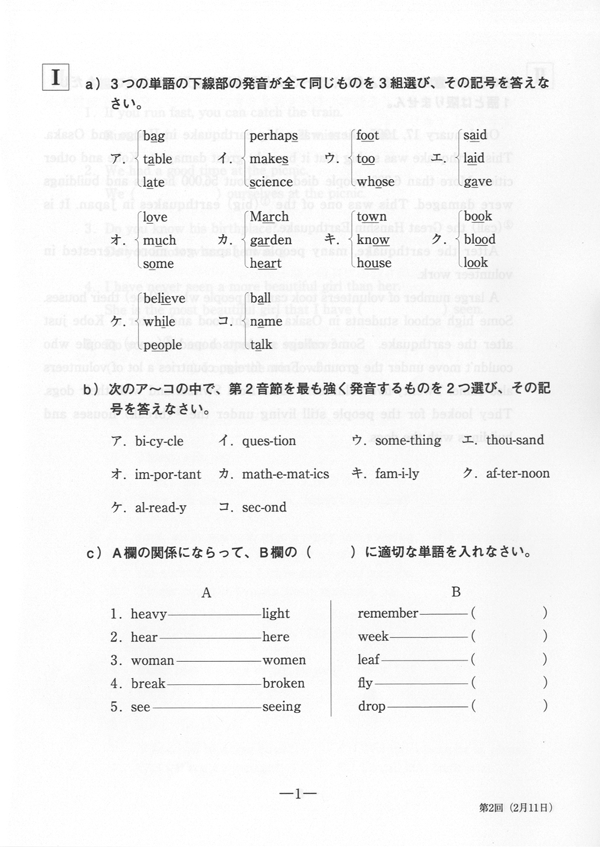 平成20年度入試過去問題第2回(英語 問題)(1ページ目)|実践学園高等学校の入試過去問