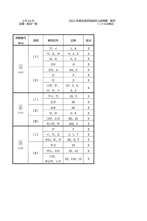 2024年度入試過去問題 (数学 解答)(1ページ目)|杉並学院高等学校の入試過去問