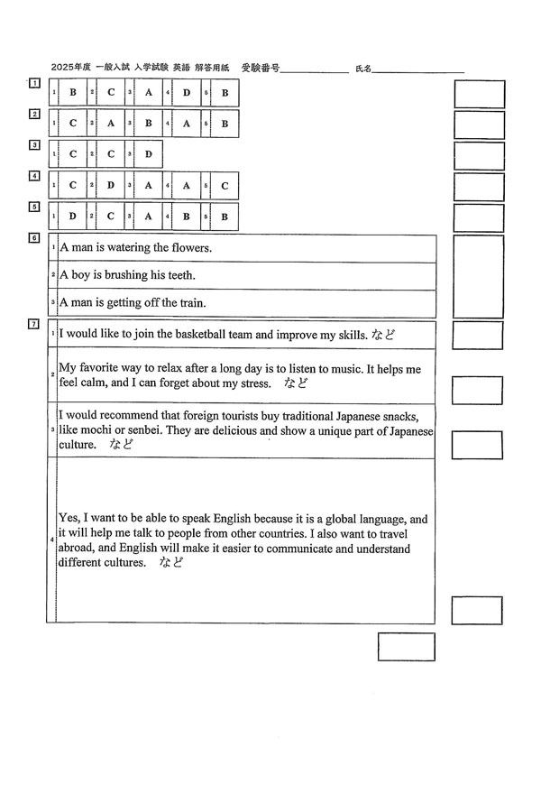 2025年度入試過去問題  一般(英語 解答)(1ページ目)|芝浦工業大学附属高等学校の入試過去問