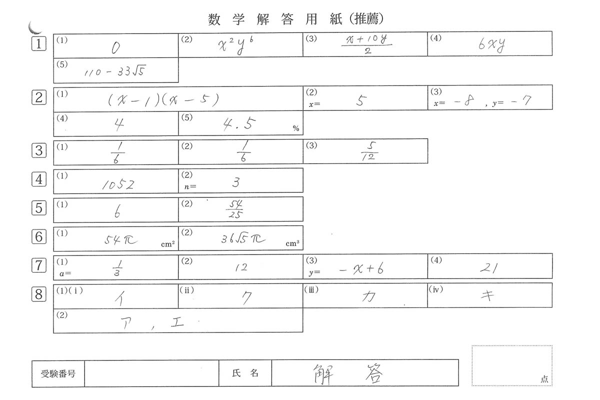 2023年度入試過去問題 推薦(数学 解答)(1ページ目)|大東文化大学第一高等学校の入試過去問
