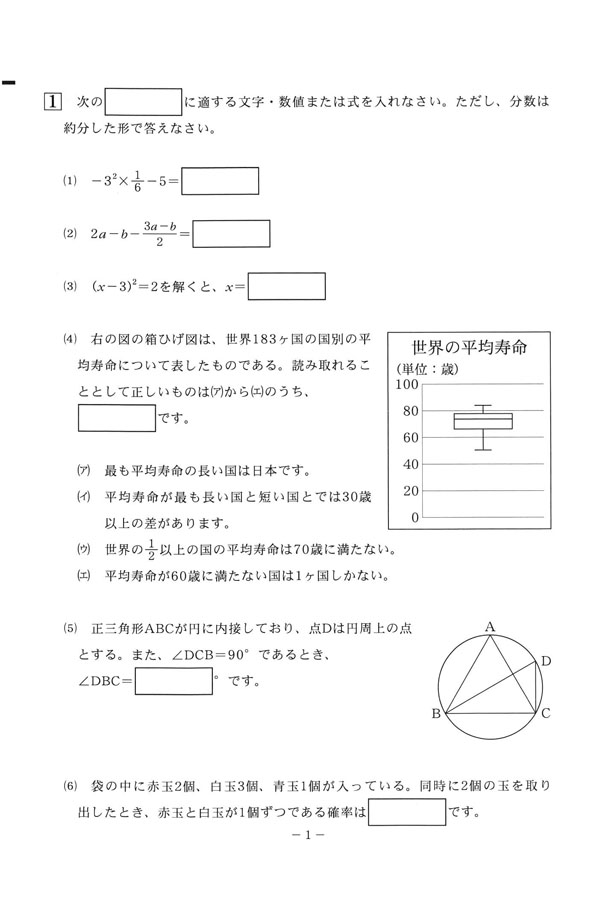 2025年度入試過去問題 (数学 問題)(1ページ目)|帝京高等学校の入試過去問