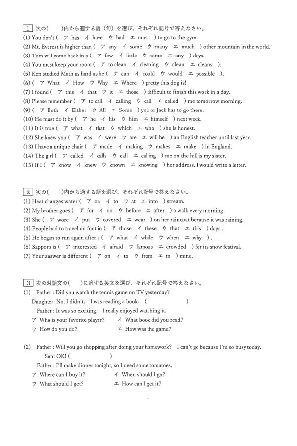 入試過去問(問題)(1ページ目)|日本体育大学桜華高等学校の入試過去問