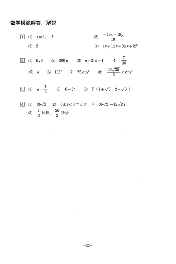 2020年度入試過去問題(数学 解答)(1ページ目)|聖徳学園高等学校の入試過去問