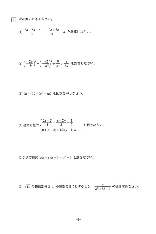 2025年度入試過去問題 (数学 問題)(1ページ目)|明治大学付属八王子高等学校の入試過去問