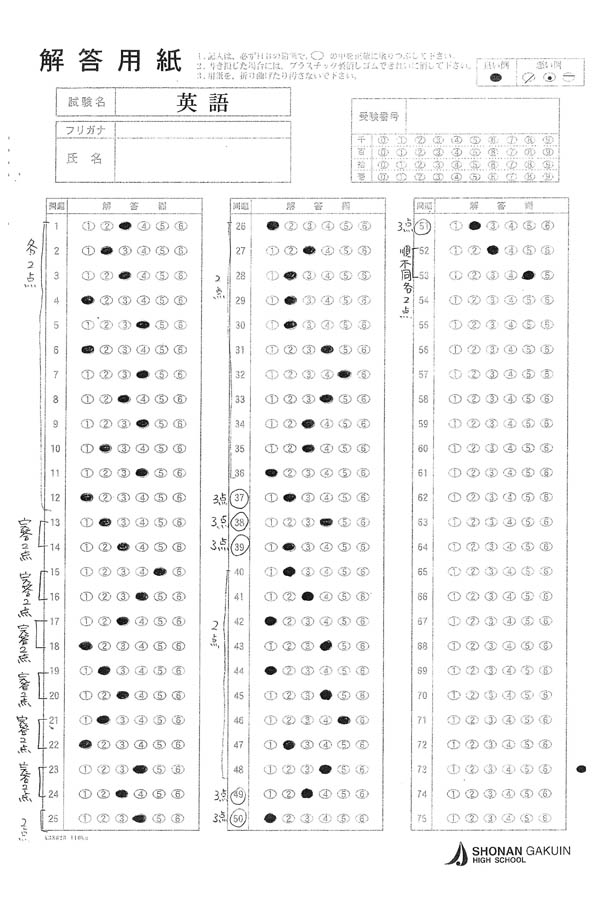 2024年度入試過去問題 (英語 解答)(1ページ目)|湘南学院高等学校の入試過去問