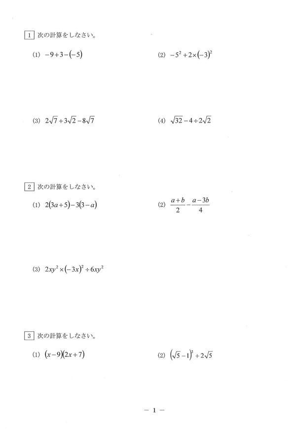 平成29年度入試過去問題(数学 問題)(1ページ目)|鎌倉国際文理高等学校の入試過去問