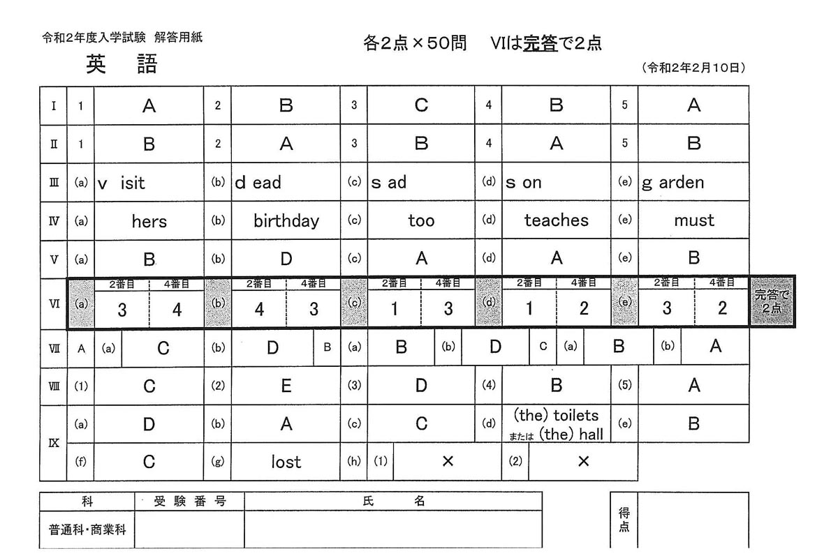 入試過去問(解答)(1ページ目)|藤沢翔陵高等学校の入試過去問