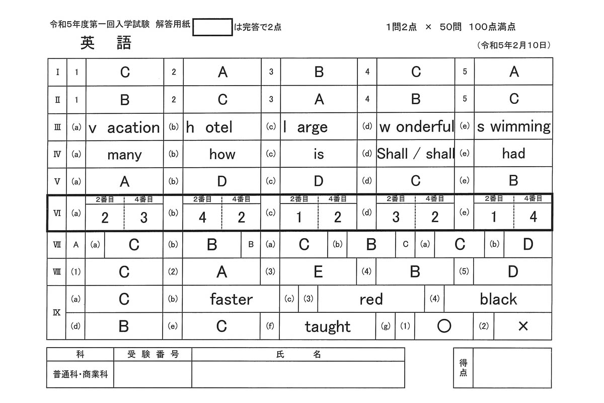 2023年度入試過去問題(英語 解答)(1ページ目)|藤沢翔陵高等学校の入試過去問