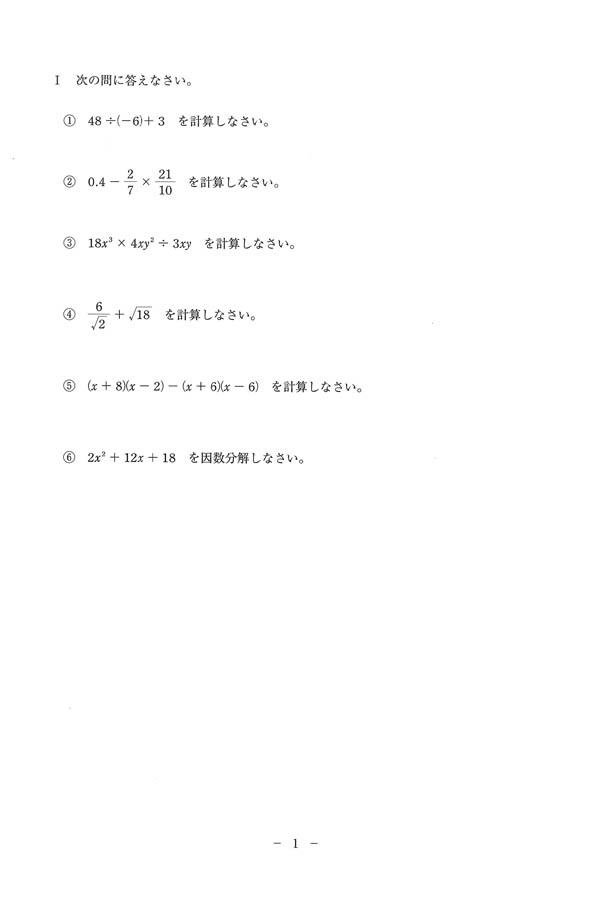 入試過去問(問題)(1ページ目)|藤沢翔陵高等学校の入試過去問
