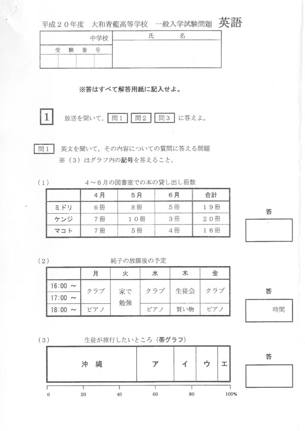 入試過去問(問題)(1ページ目)|大和青藍高等学校の入試過去問