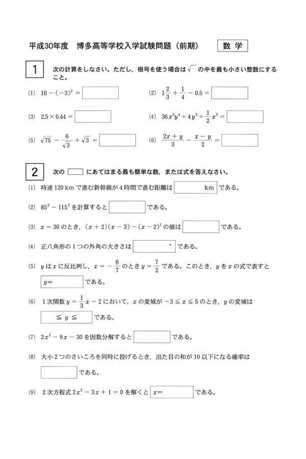 入試過去問(問題)(1ページ目)|博多高等学校の入試過去問