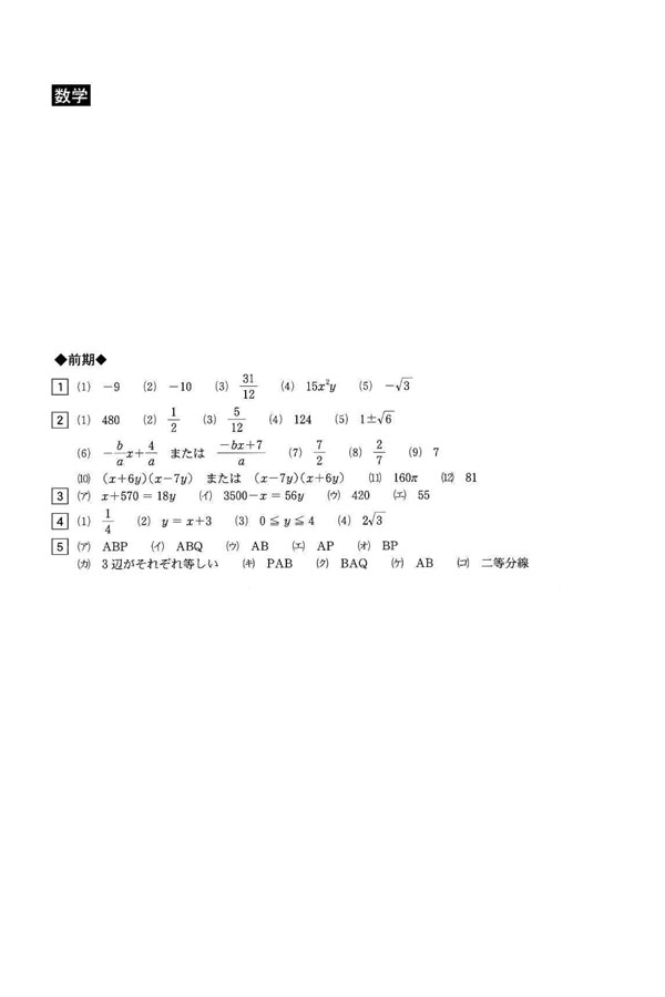 平成25年度入試過去問題 前期(数学 解答)(1ページ目)|博多高等学校の入試過去問