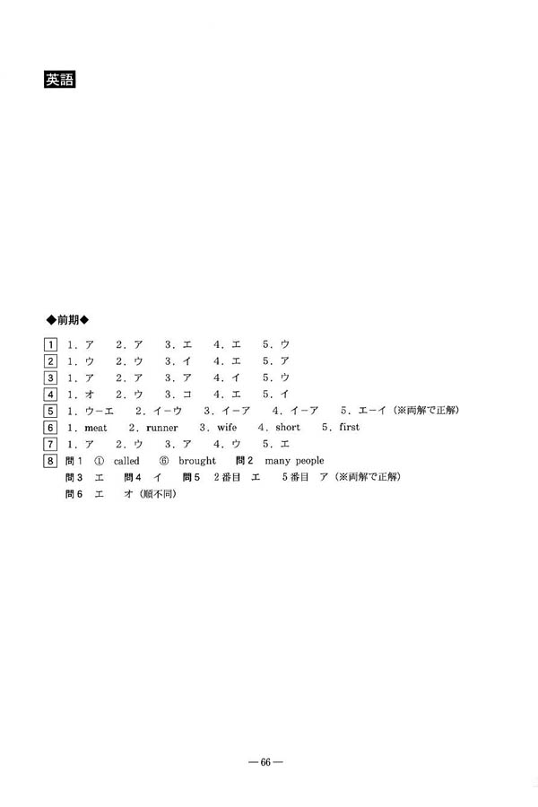 平成26年度入試過去問題 前期(英語 解答)(1ページ目)|博多高等学校の入試過去問