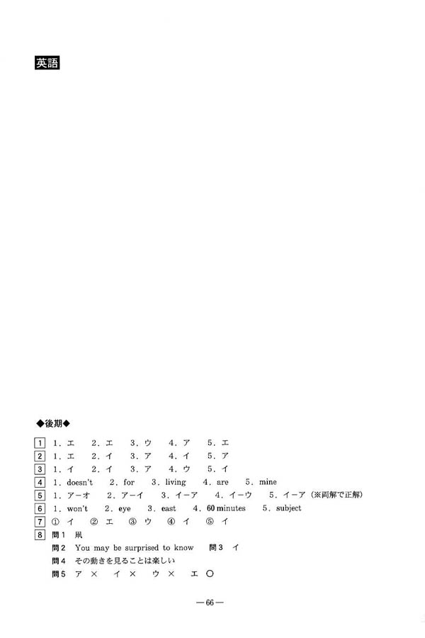 平成26年度入試過去問題 後期(英語 解答)(1ページ目)|博多高等学校の入試過去問
