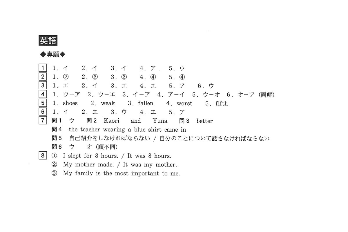 令和5年度入試過去問題 専願(英語 解答)(1ページ目)|博多高等学校の入試過去問