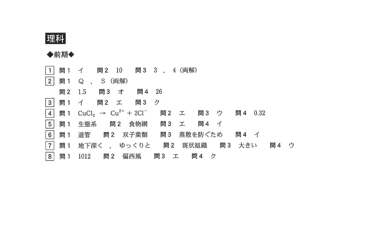 令和6年度入試過去問題 前期(理科 解答)(1ページ目)|博多高等学校の入試過去問