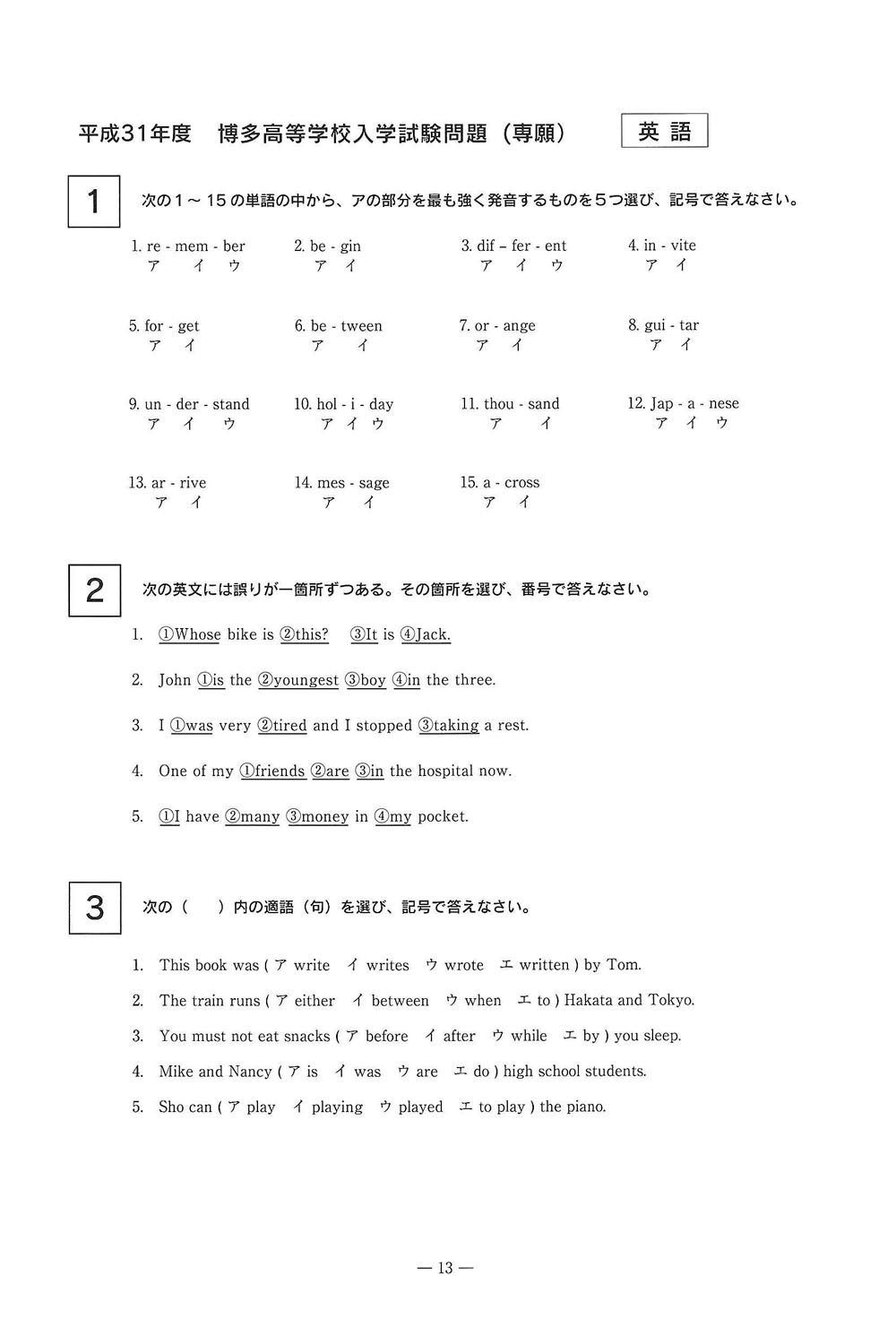 入試過去問(問題)(1ページ目)|博多高等学校の入試過去問