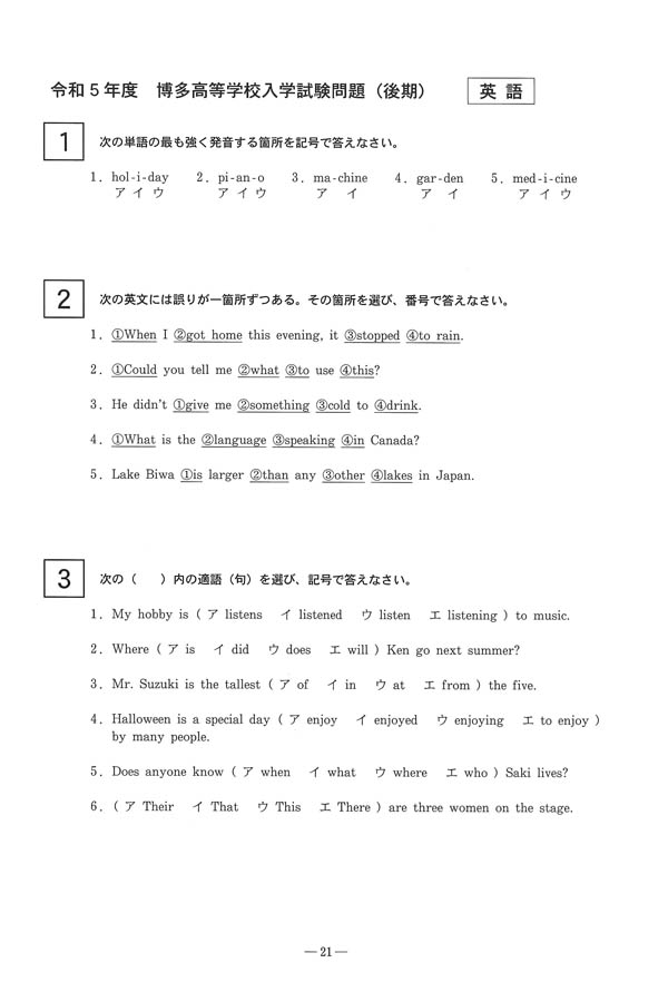 入試過去問(問題)(1ページ目)|博多高等学校の入試過去問