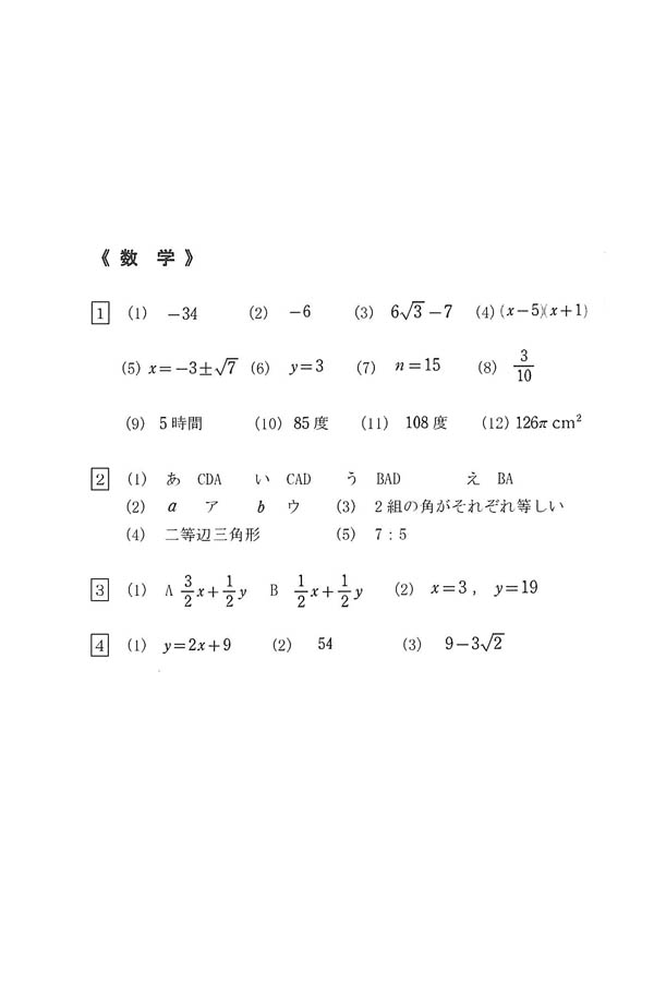 令和6年度入試過去問題 専願(数学 解答)(1ページ目)|明光学園高等学校の入試過去問
