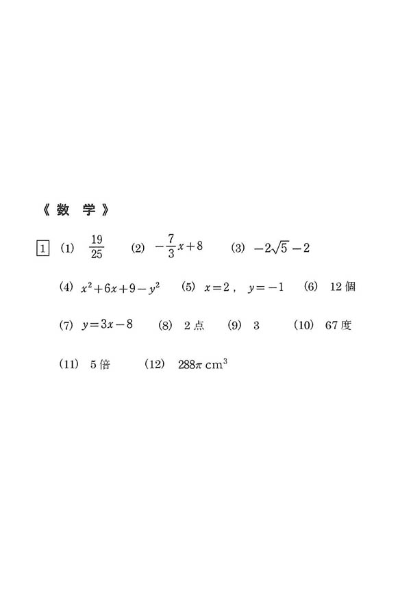 令和6年度入試過去問題 一般(前期)(数学 解答)(1ページ目)|明光学園高等学校の入試過去問