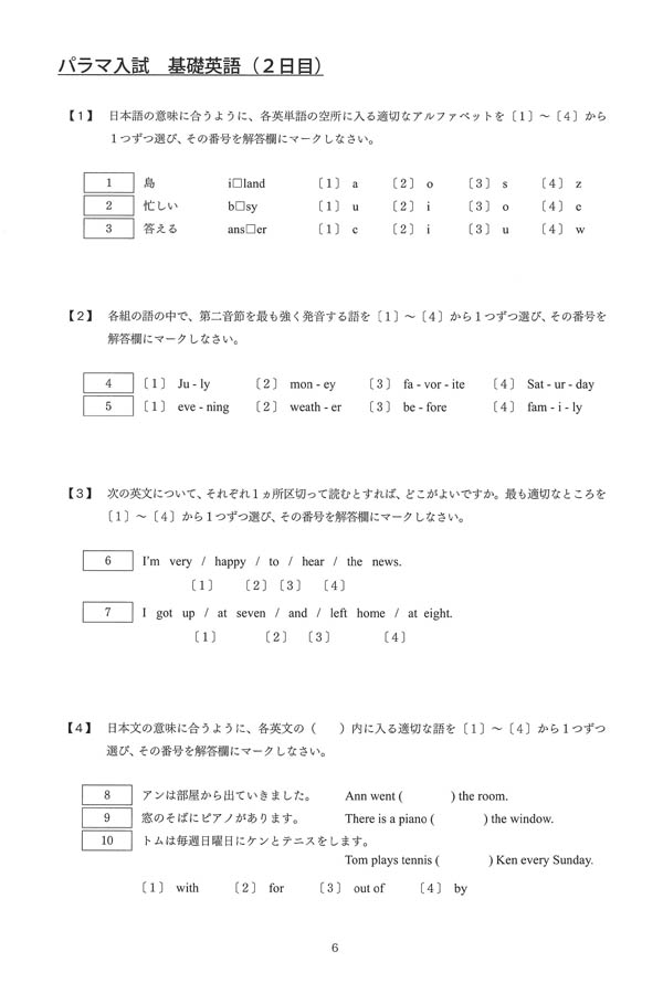 令和5年度入試過去問題 パラマ入試 基礎英語(2日目)[1/5]