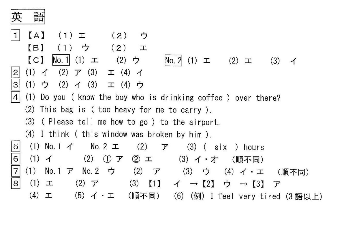 2024年度入試過去問題 前期(英語 解答)(1ページ目)|東海大学付属福岡高等学校の入試過去問