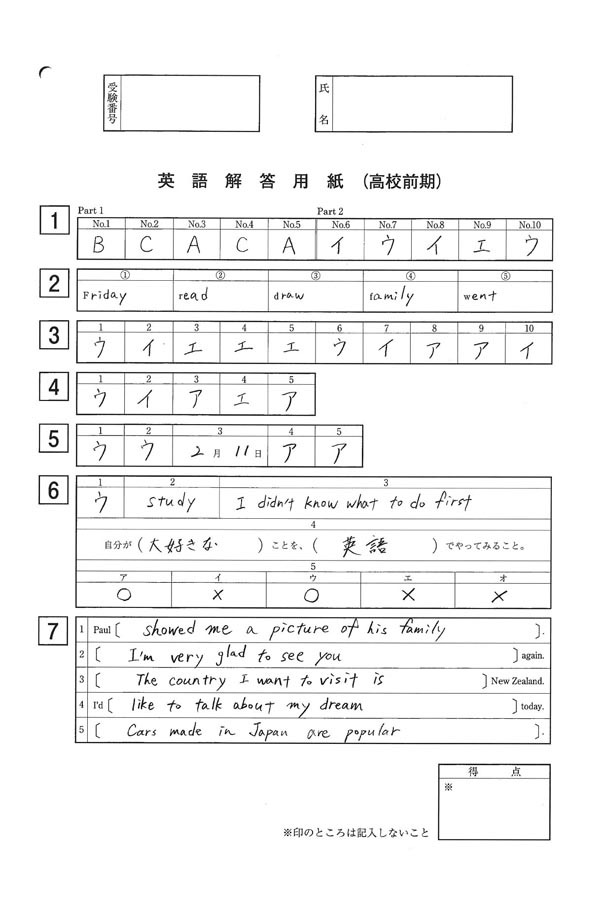 中村学園三陽高等学校の平成31年度入試過去問題-英語解答