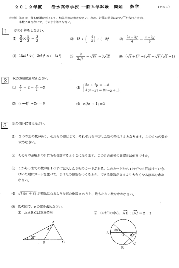 平成24年度入試過去問題 一般入学試験[1/2]