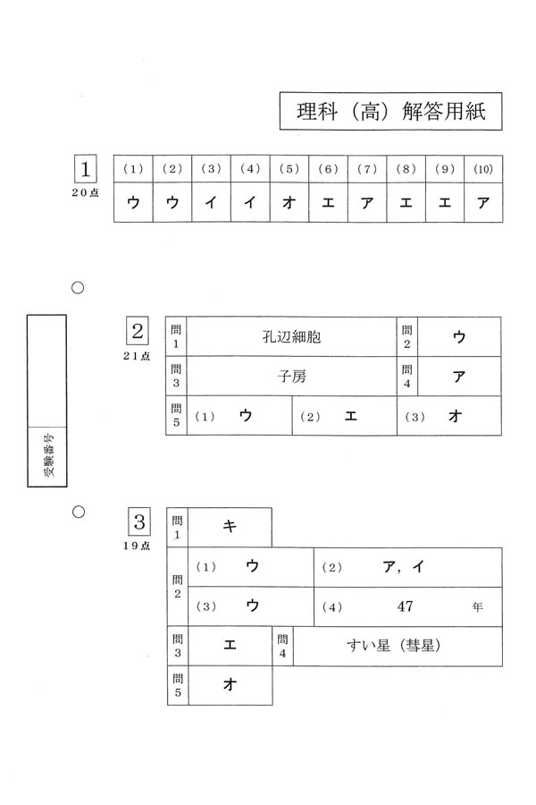 平成31年度入試過去問題(理科 解答)(1ページ目)|青雲高等学校の入試過去問