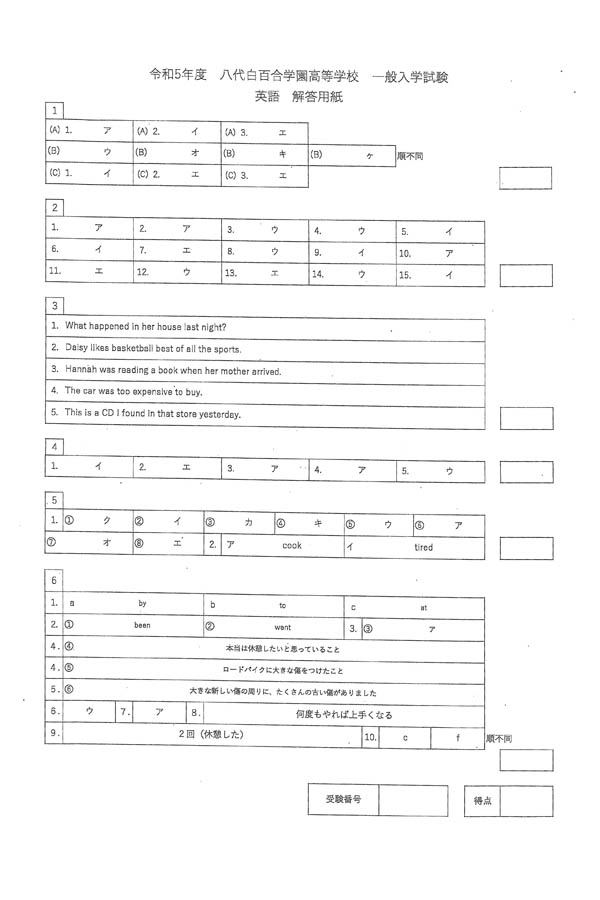 入試過去問(解答)(1ページ目)|八代白百合学園高等学校の入試過去問