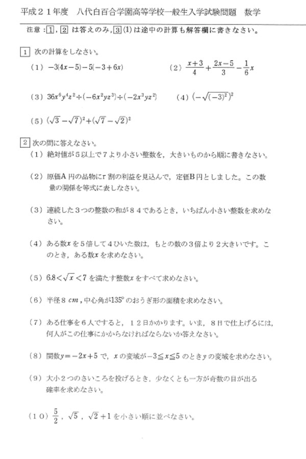 入試過去問(問題)(1ページ目)|八代白百合学園高等学校の入試過去問