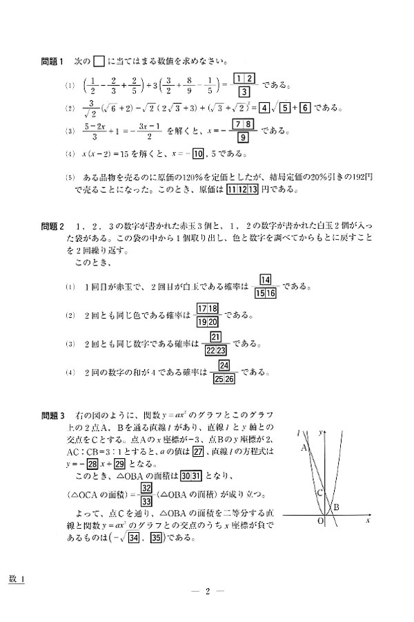 平成24年度入試過去問題(数学 問題)(1ページ目)|札幌第一高等学校の入試過去問