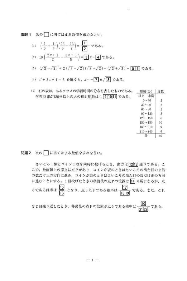 平成25年度入試過去問題(数学 問題)(1ページ目)|札幌第一高等学校の入試過去問