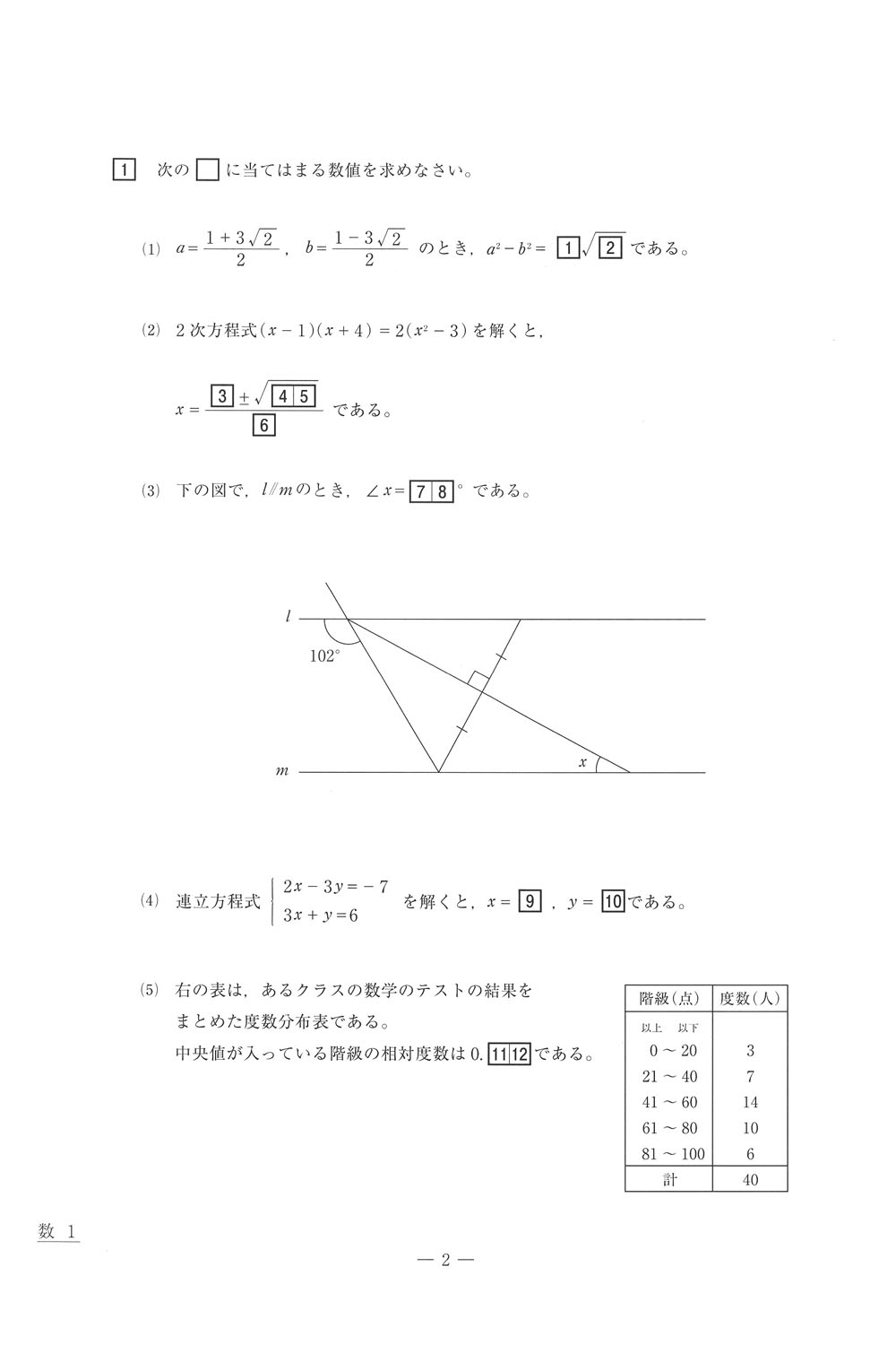 入試過去問(問題)(1ページ目)|札幌第一高等学校の入試過去問