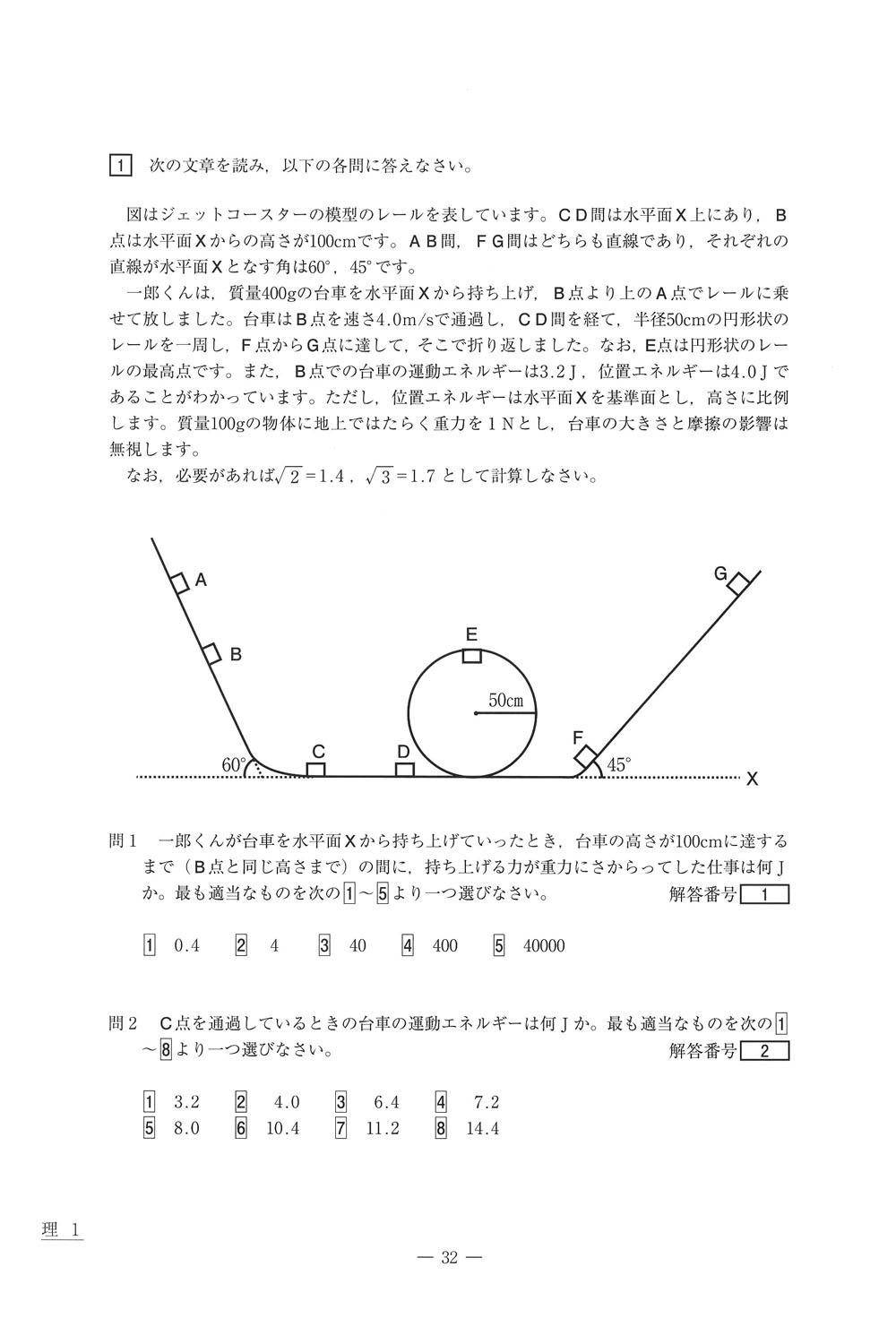 2020年度入試過去問題(理科 問題)(1ページ目)|札幌第一高等学校の入試過去問