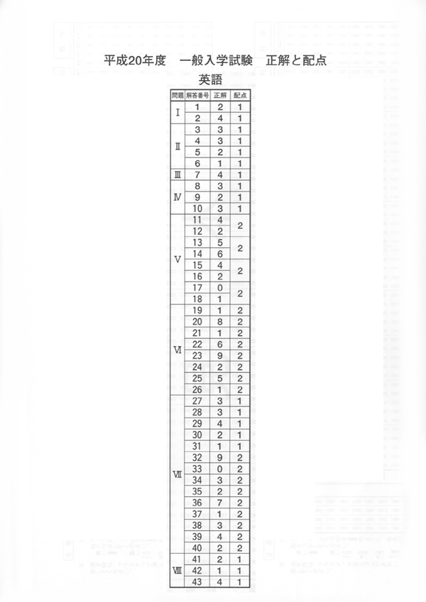 平成20年度入試過去問題(英語 解答)(1ページ目)|札幌第一高等学校の入試過去問