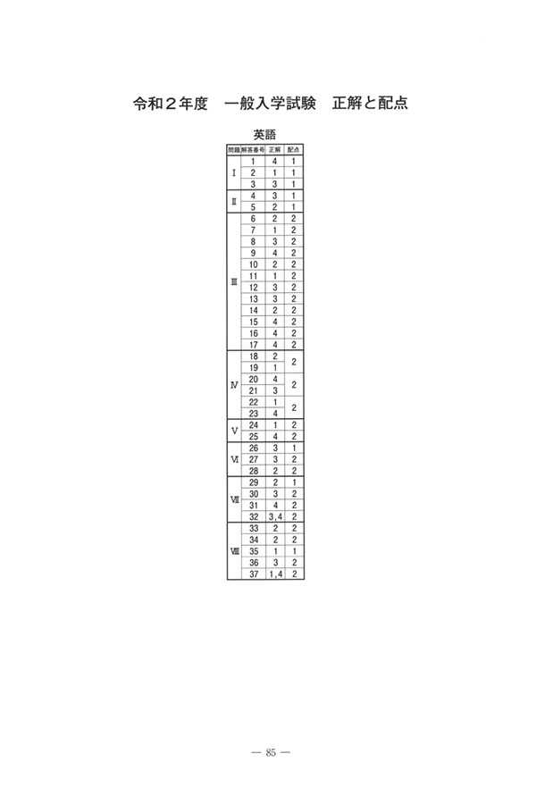 2020年度入試過去問題(英語 解答)(1ページ目)|札幌第一高等学校の入試過去問